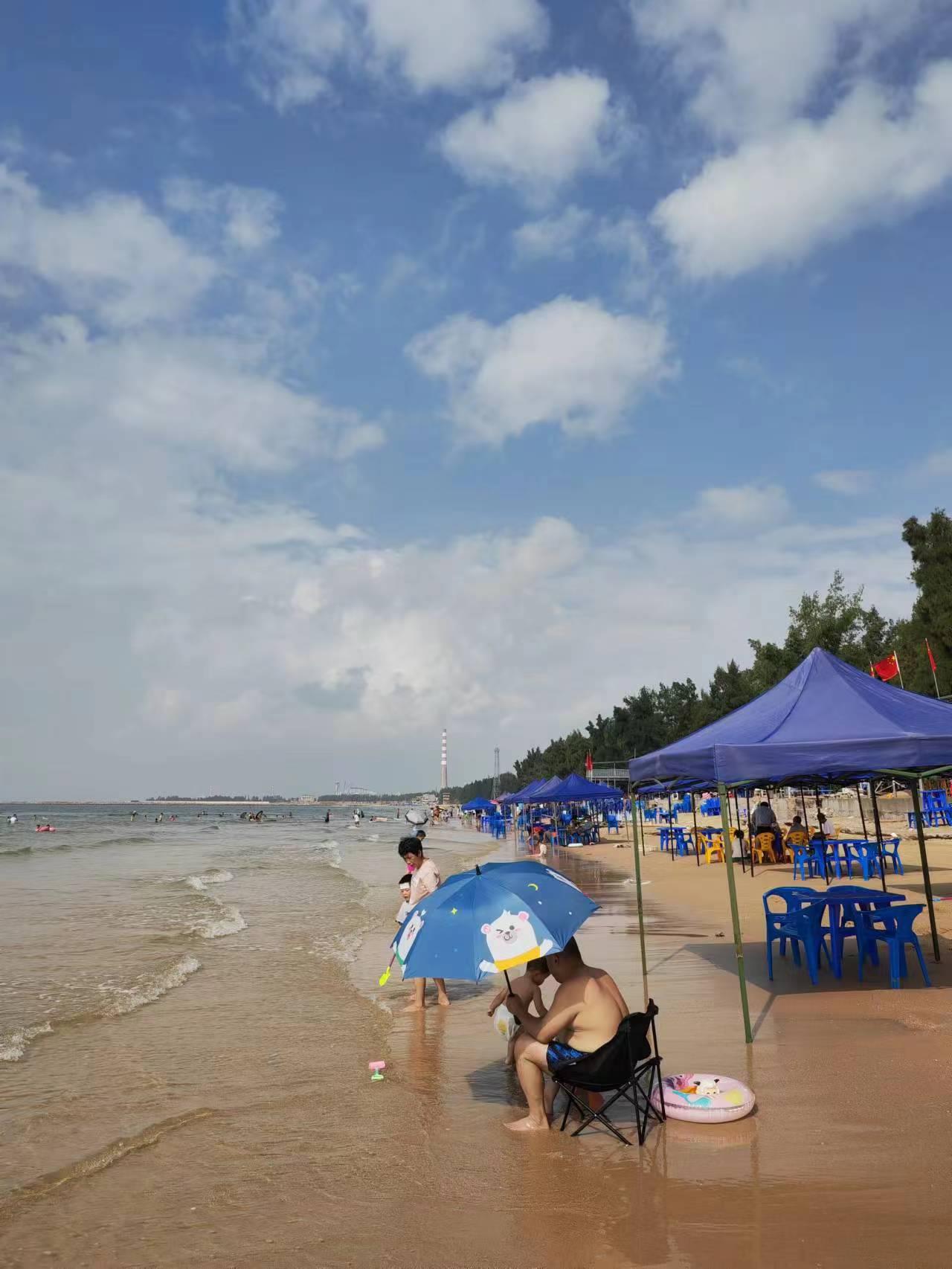 二是酒店就在镇上的核心区域,到哪里都很方便,比如楼下就是海鲜大排档,前行100米就是企沙灯塔,骑共享电动车10分钟就到了天堂角海滩(车费4元),特别方便。