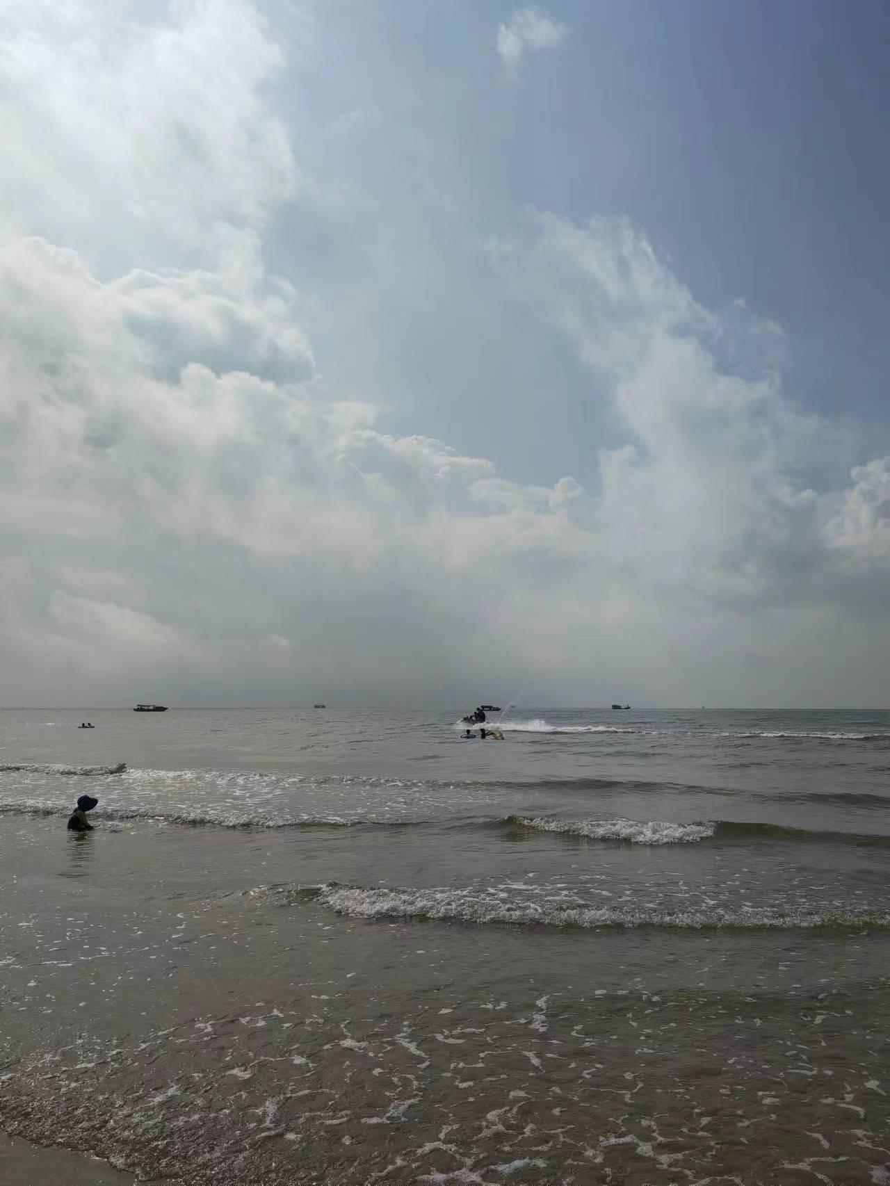 来企沙镇的主要目的是陪小朋友玩沙,所以我们在企沙镇的大部分时间都是在沙滩上。第二天早上和第三天早上,我们都开着共享电动车来到天堂角沙滩,玩沙。