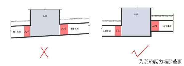 2. 地库入户不存在较大高差,且主楼埋深无需另行设计