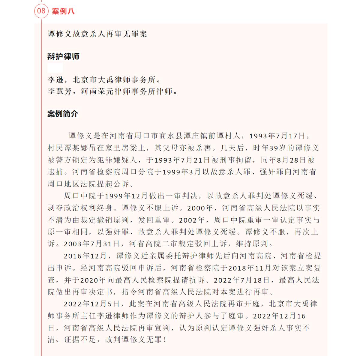 当“河南谭修义蒙冤29年被改判无罪”一案入选的消息传出后,再次引发了人们的关注。