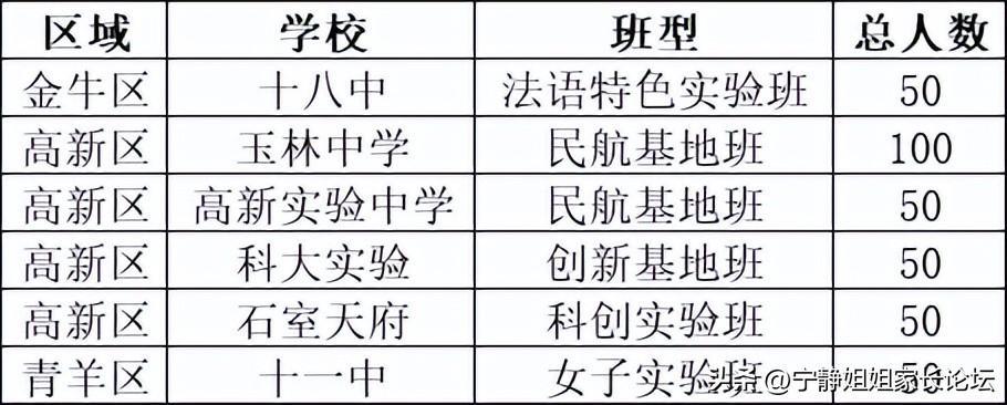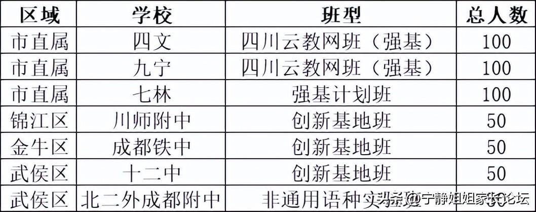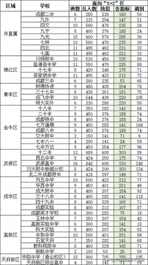 面向全省招生的只有七林、九宁(丘成桐少年班)、十二中(空Jun青少年航空实验班)和棠湖中学(海Jun青少年航空实验班)这4所高中,面向非“5+2”区招生的只有七林、九宁、四文、川师附中、成都铁中、十二中和北二外成都附中这7所高中。