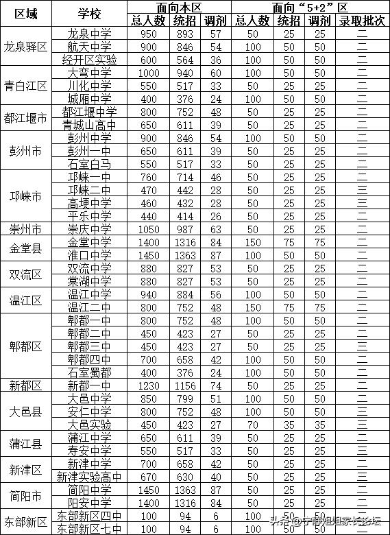 面向成都市内招生的,还可以再细分,既有面向全市,也有“11+2”区、成都东部新区、新津区,还有只在本校招生的。
