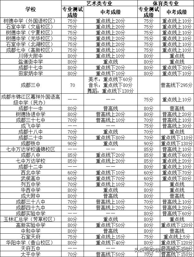 录取时中考成绩和专业成绩首先都要达到报考高中的最低分数要求,然后综合中考成绩和专业成绩,按照志愿顺序投档录取(优先录取第一志愿的学生)。艺体特长生对中考成绩要求比中考统招要低些。