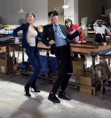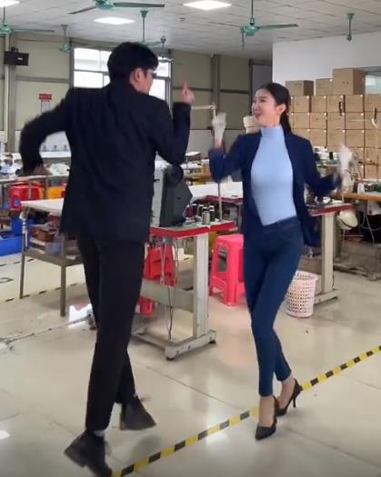 这是全网氛围最好的工厂车间,每当工人氛围不振奋时,厂长和厂花便站出来,给大家热舞一支。