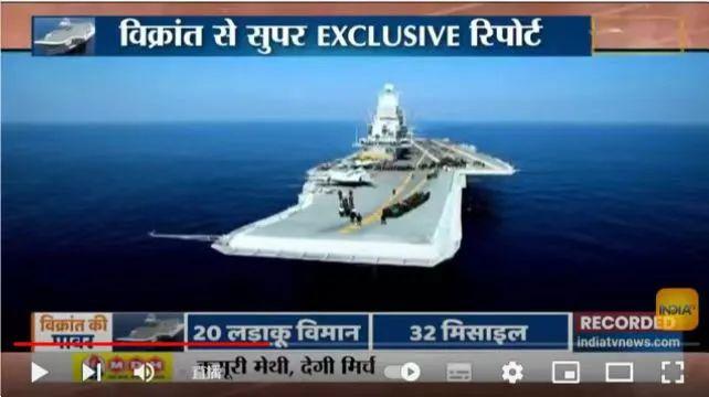 视频截图:印度电视台直播首艘国产航母服役