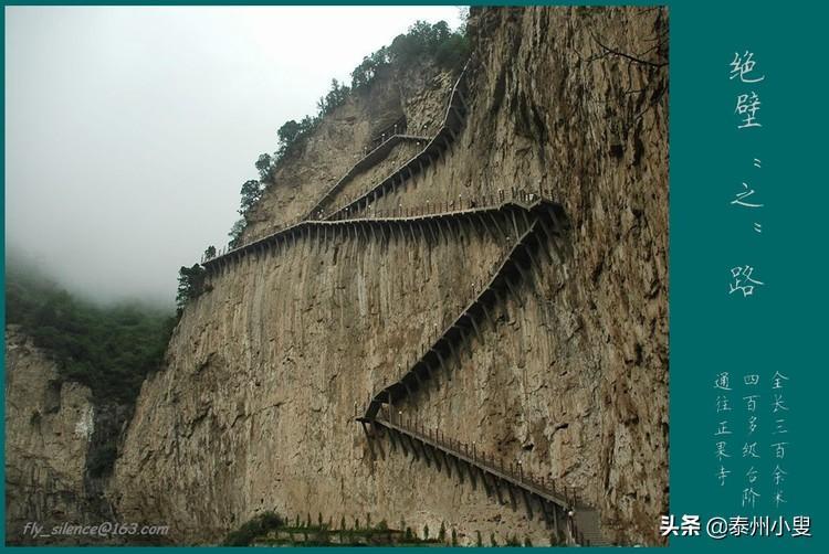天桥是因修筑在悬崖绝壁上的栈道而得名,有千余年的历史。长300余米,宽 1 米多,上离峰顶80余米,高入云表;下距沟底300余米,悬于危岩上。每逢雨过云涌,人在桥上过,云在脚下飞,使人有平步青云,飘飘欲仙之感。景区内主要建筑是洞神宫、祖师殿、七真殿、水母殿、悬空长廊等和回头看柏龙、兔桥、须弥石等名胜景观。有孔明和张良等人的修行洞。此外还有中国古代最险绝的军事堡垒--石勒寨,地势险峻,易守难攻。