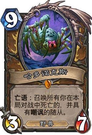 这两张印记是吃素的?嘲讽还能不解?如果想更多的围绕这张大蜘蛛打,还可以带上一张唤尸者。相当于一张先祖召唤+站场,虽然身材很差,但是拥有职业卡效果的还是值得拥有了!