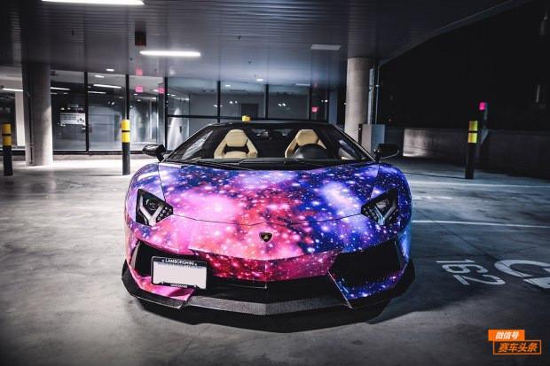 身披星空的是一辆兰博基尼Aventador LP 700-4 Roadster,由加拿大温哥华的一家超跑俱乐部进行定制改装,我们再也不用抬头去幻想了,绚烂的颜色仿佛让人觉得浩瀚的星空就在眼前,触手可及。