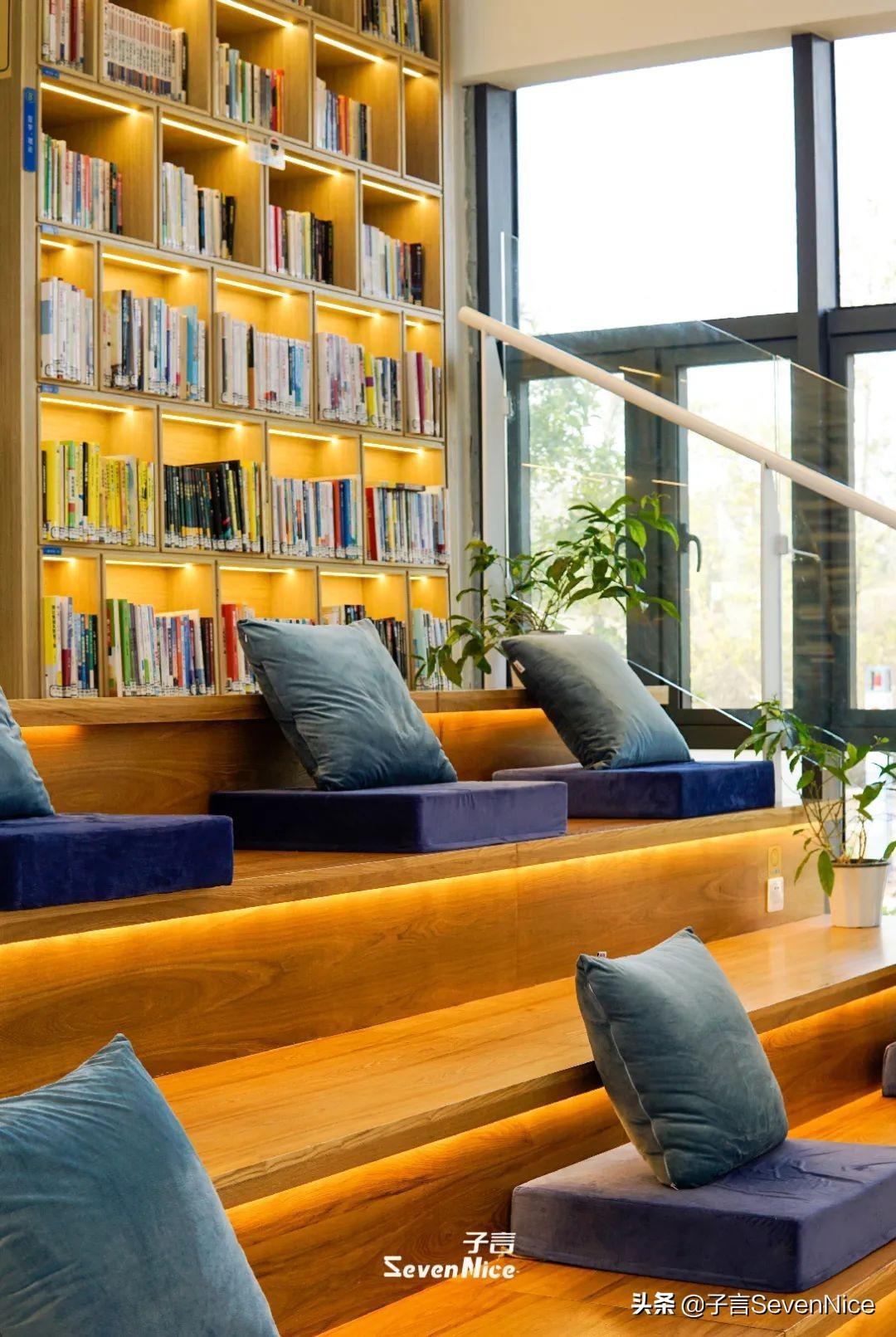 明媚的阳光透过一楼智慧阅读区的落地窗洒进来,坐在窗前静静阅读,抬头即见窗外九龙湖公园的亮丽风景。