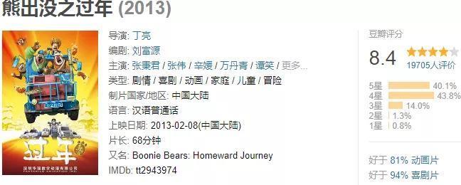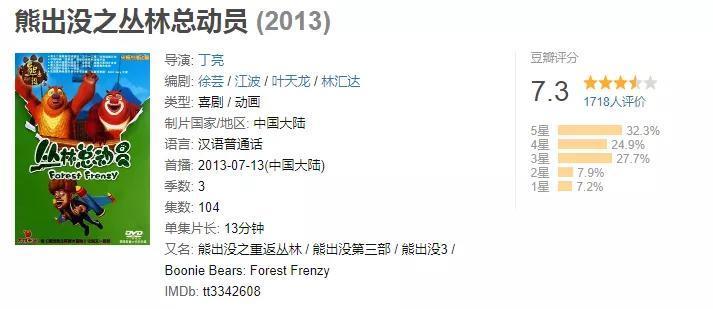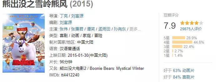 这是熊出没的贺岁片,是第一部电影,也是评分最高的一部。