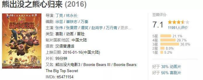纵观电影,其实熊出没的电影还是不错的,除了2020年没有,其他时候每年都会出一部电影,质量不能说多好,但也还中规中矩。
