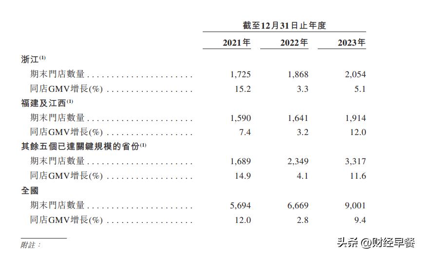 与其它省门店相比,浙江同店GMV增长已经从2021年的15.2%下滑至2023年的5.1%,其余五省的同店GMV增速由14.9%降至11.6%,福建及江西地区的同店GMV增速从7.4%上升至12.0%。