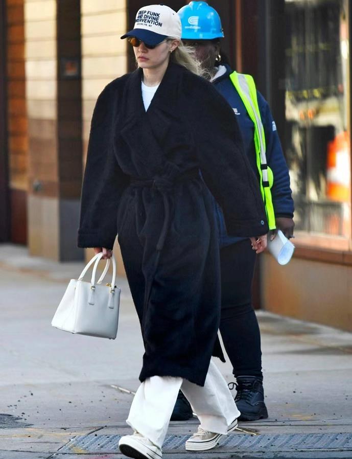 黑色大衣与连帽卫衣的结合,真的是既时髦又充满了青春与活力,整体看起来是非常减龄的。