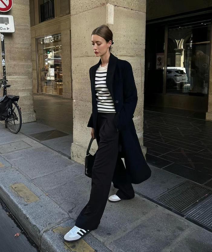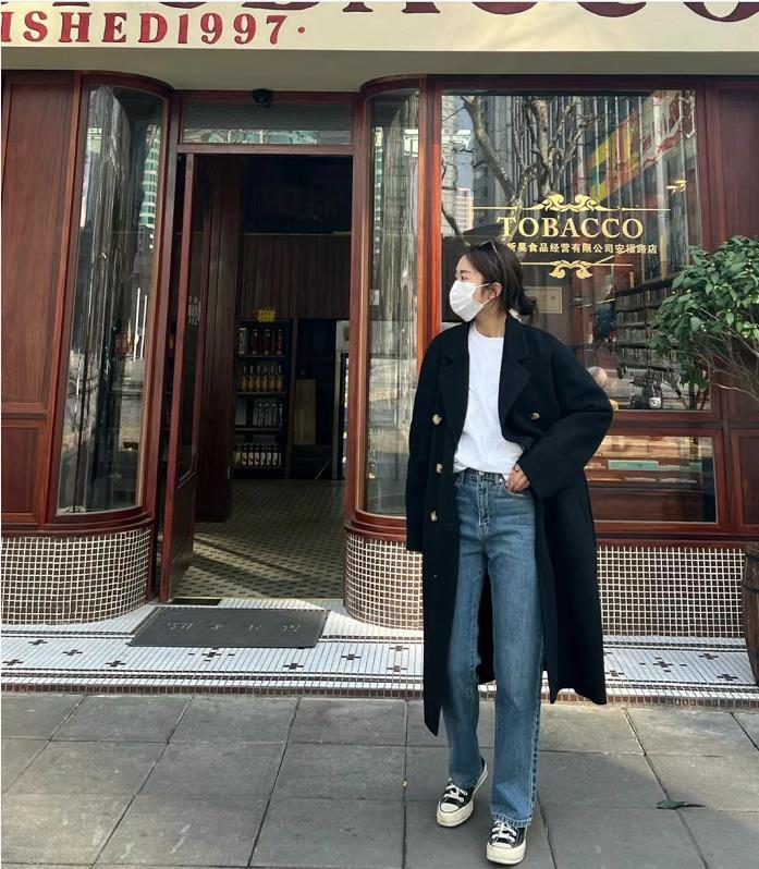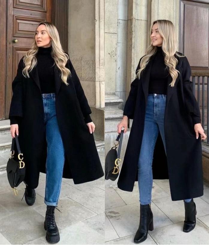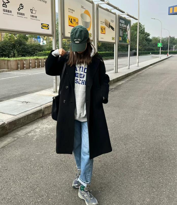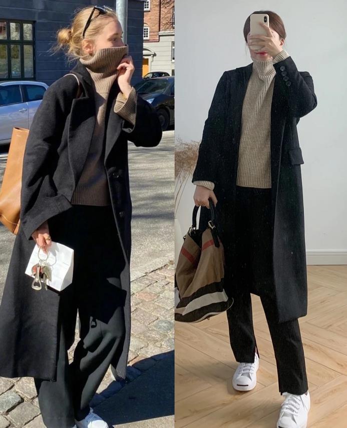 冬天想要穿得漂亮,还是得靠大衣啊,黑色大衣永远是每年衣橱里的必选品,选择简约的款式即可,配上简单的白t恤和牛仔裤,鞋子选一双帆布鞋,绝了。