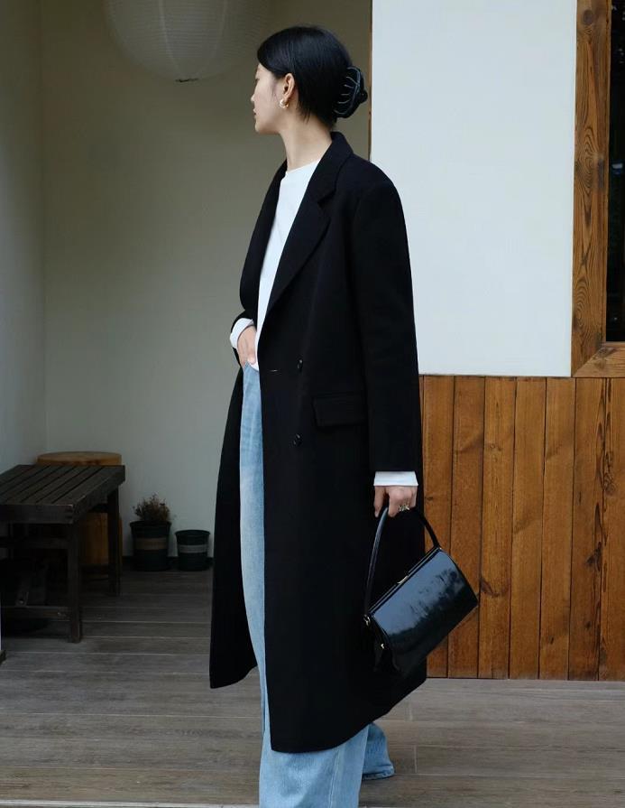 经典的黑色大衣,真的可以毫不夸张的说人手一件,长度选择过膝的位置就行,这样的长度150的小个子也能穿。