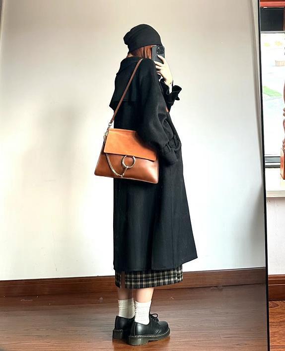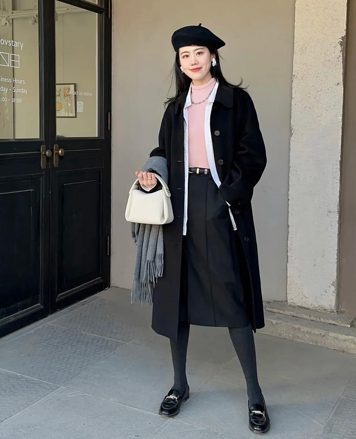 黑色大衣+半身裙