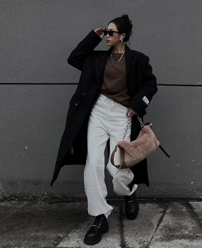 有时候,最简单的搭配却意外好看,白色+牛仔裤+黑色长大衣,不管是日常逛街,还是上班都可以。