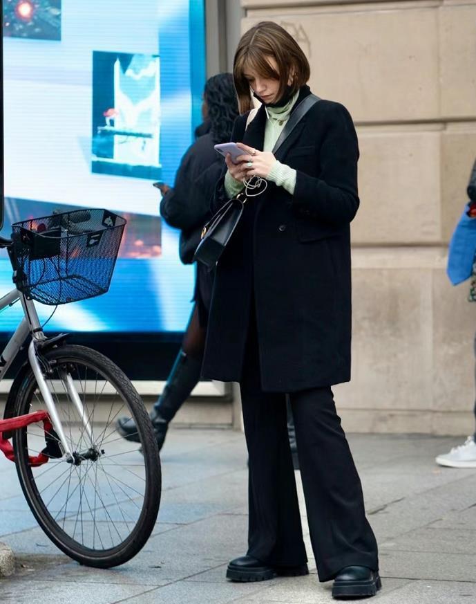 黑色大衣虽然很百搭,也几乎人手一件,但它真的是很容易穿出沉闷感,所以,在内搭和配饰上要多花些心思。