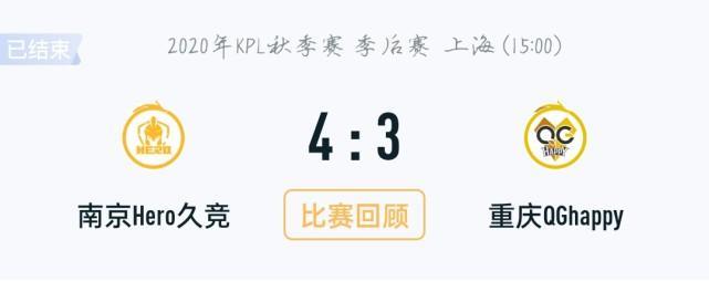 2020年KPL秋季赛,重庆QG3:4负于南京hero久竞,止步8强