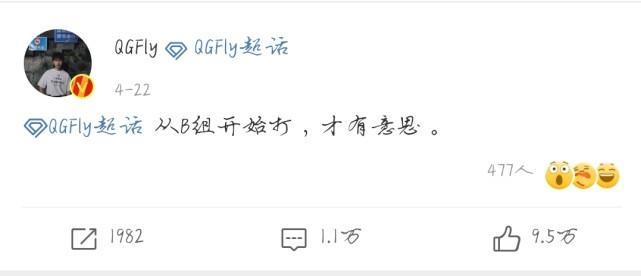 甚至在2021年春季赛早期,QG管理层决定让fly替补,以杰杰替代fly。也许是大赛经验不足,抑或是彼此磨合不够,QG以A组倒一(1胜4负)成绩滑倒B组。