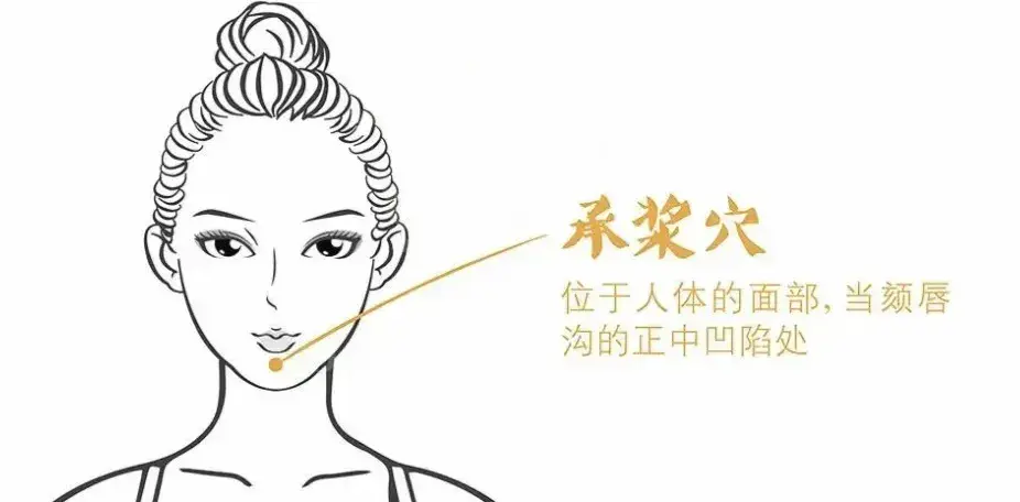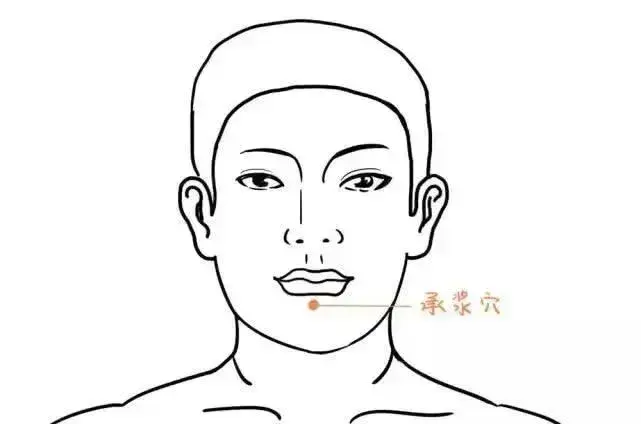 承浆穴需要从名字说起,因为它的名字就已经告诉大家它的作用所在。承指的是承受储藏之意,而浆即指水浆。因为本穴位于我们人体的嘴巴下方,古人认为它是一个承接并储藏我们口中津液的地方,所以把它称为承浆穴。本穴的定位也是非常简单的。古籍《针灸甲乙经》记载:“承浆,一名天池,在颐前下唇之下,足阳明任脉之会,开口取之。”教材《针灸学》则记载:“承浆穴在面部,当颏唇沟的正中凹陷处。”如果你还是找不到穴位,那它还有一个非常简便的取穴方法,你正坐仰靠,然后在颏唇沟正中按压有凹陷处就是承浆穴了。
