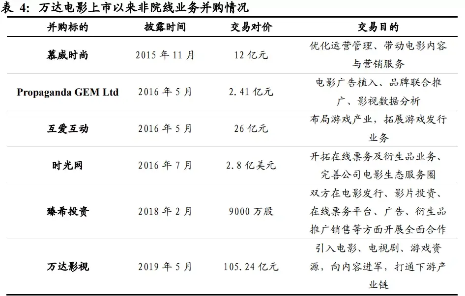 2015年以来,万达一直在收购资产,其中万达影视布局产业链上的制作环节以及营销发行环节,时光网类似于淘票票、猫眼娱乐的性质等。基本上电影产业链上除了主创团队,基本都布局到位了。但与此同时,公司产生的商誉比较多,2019、2020年都计提了商誉减值,今年一季度还显示有商誉46亿元澳洲院线,这块有可能会在某个时间被计提,国外的疫情不容忽视。