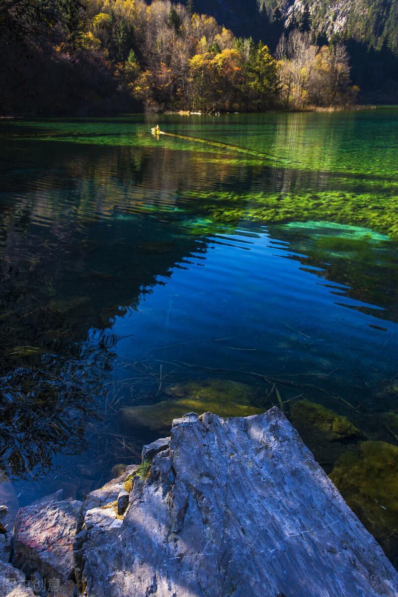 蓝天、白云、雪山、森林,尽融于九寨的瀑、河、滩,恰似一串串从天而降的珍珠,无论春夏秋冬,这里的水永远都是这样透透的碧色,处处蕴含着无限生机。