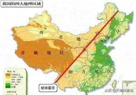 这就是著名的中国人口分界线:“爱辉—腾冲”线(解放后称“黑河—腾冲线”),在国际上,命名为“胡焕庸线”。
