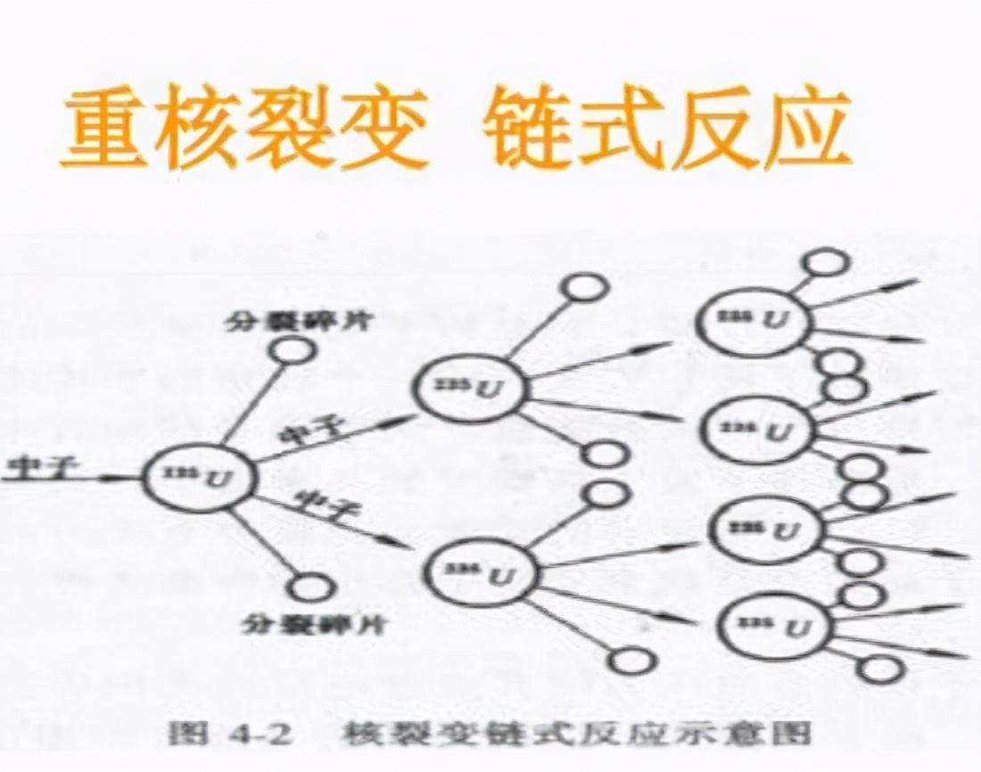 这里就得好好说说这个链式反应了,在物理学中,裂变链式反应指一种反应过程的产物可以引起另一种反应,因而使这种反应一经开始就能自动持续进行的反应过程。例如,作为核原料的铀235的原子核在吸收一个中子后发生裂变,一分为二。铀核裂变放出2~3个中子,这些中子又会打中旁边的两个核,并击破它们。这又会产生出4个新的中子,粉碎另外4个核。这样。由1个铀核裂变引起2、4、8、16……个铀核裂变,一生二二升四,子子孙孙无穷匮矣,再举个直观的例子,依照上面所说的原理,一克铀能产生的热量相当于2700吨煤。