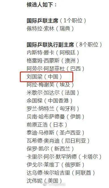 据中国新闻网9月7日消息,国际乒联提名委员会对国际乒联执行委员会的候选人进行审查,并向成员协会公布候选人名单。中国乒协主席刘国梁被提名国际乒联执行副主席一职。
