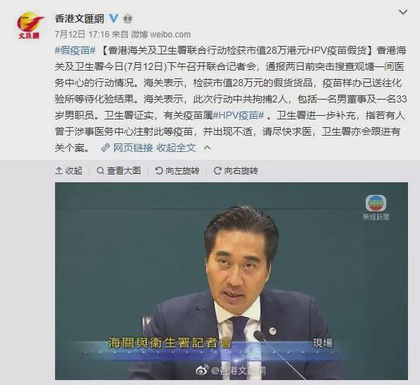港媒报道称,香港某诊所为牟取暴利,将正版的HPV疫苗,