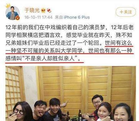 而于晓光的微博都在劝他好好珍惜秋瓷炫。