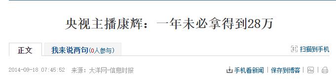“央视主播的工资比工资条上一定多,多多少呢?每个月工资至少多一倍。但我们没外面炒得那么多,我一年都未见得能拿到28万。”