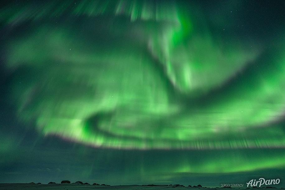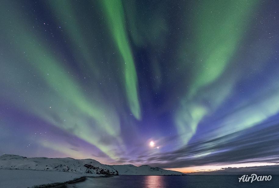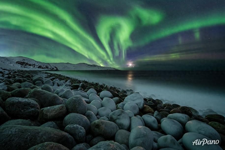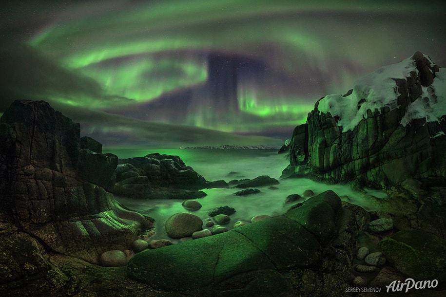 北海湍流动荡是有原因的:这里的天气极少晴朗,而在颜色明亮的冬季,冷空气和风力尤为强烈。即便如此,捷里别尔卡湾仍被认为是观测极光现象的最佳地点。2023年3月,七年来最强烈的地磁暴产生了一束在世界所有北方地区都能看到的美丽极光,无法忽略这一事实。