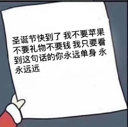 圣诞节快到了,我不要苹果,不要礼物,不要钱,我只要看到这句话的你永远单身,永永远远