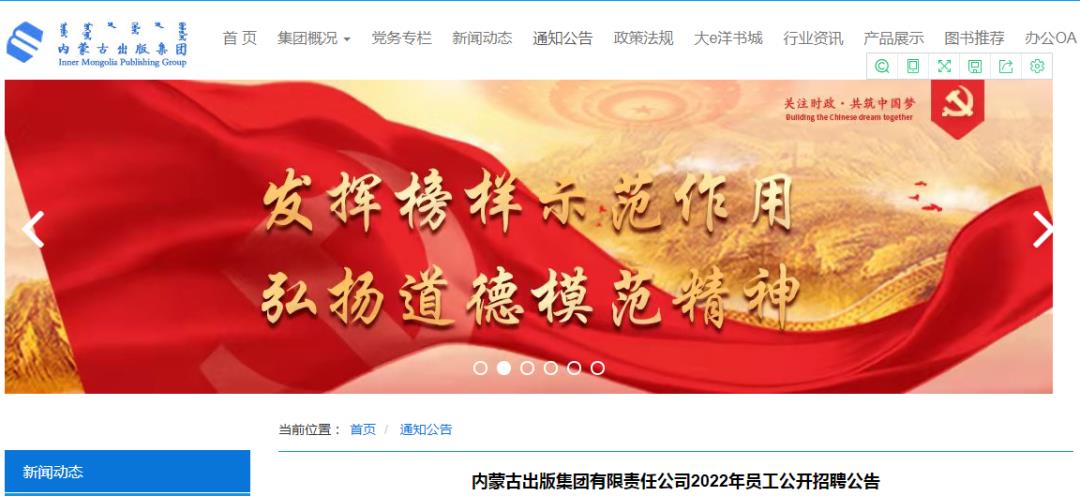 内蒙古出版集团有限责任公司2022年员工公开招聘公告