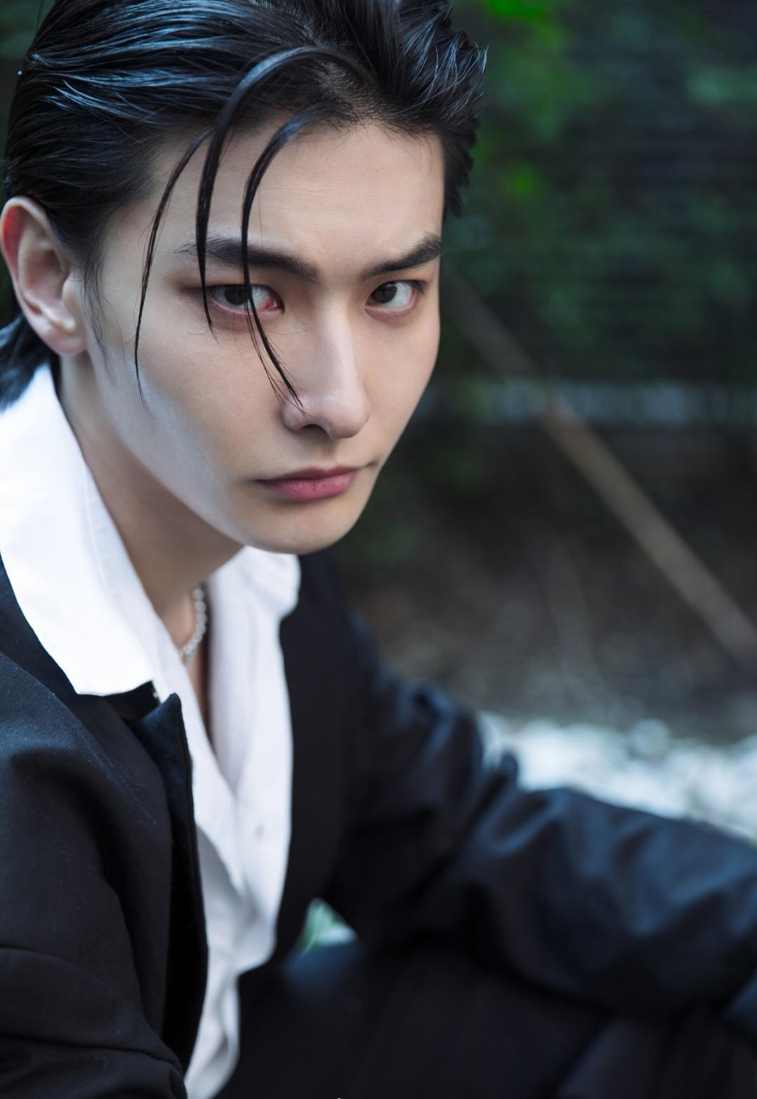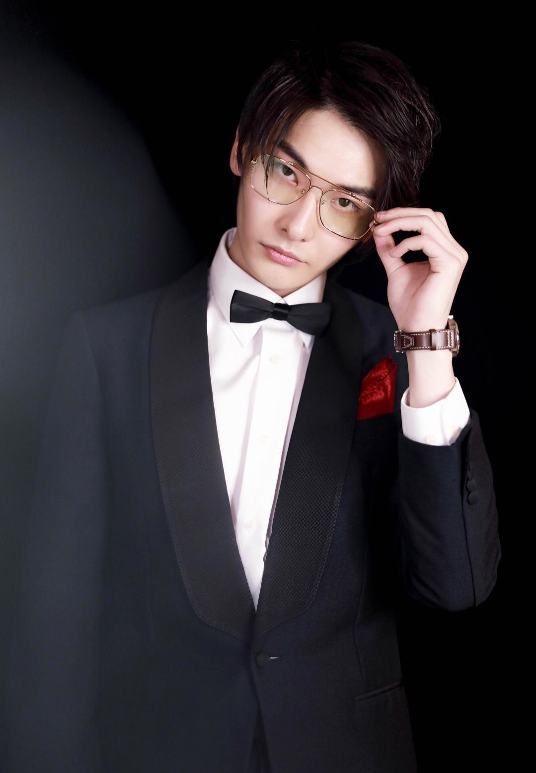 表情严肃,面带冷酷,给人一种生人勿近的感觉,不得不说,这个阵势还真有几分大王爷的风范。括号刘海的发型,外加一副眼镜,斯文中带着几分文艺,没有过多装饰,只有简单的西装黑白配,然而看起来很有吸引力。