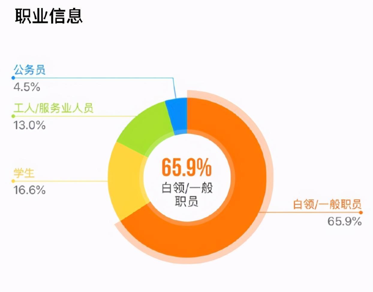 职业信息中,学生占比16.6%,换言之也就是说,工作党占比高达83.4%。