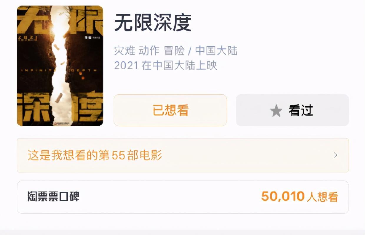 近日,由朱一龙主演的电影《无限深度》尚在紧锣密鼓地紧张拍摄中,这部电影开拍也不过两个月,在淘票票官方平台上想看人数就已经突破了5万!