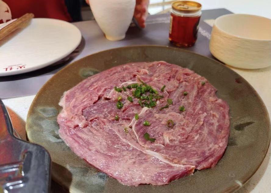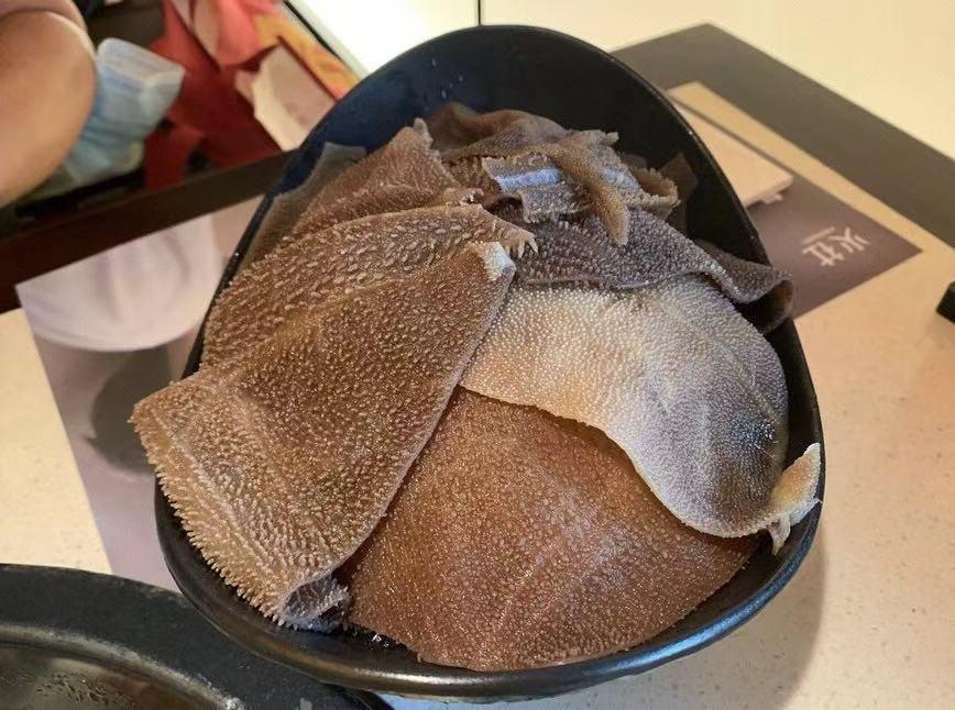 屠场血毛肚98元一份,毛肚片很大,看着是挺新鲜的,但这个毛肚我也是就奇了怪了,一开始感觉太老了,我以为自己涮久了,没有掌握要领,然后改成七上八下,但口感还是依旧老,完全没有感觉到这份毛肚98元的价值,感觉像是花90块给毛肚买了个粉色皮肤。