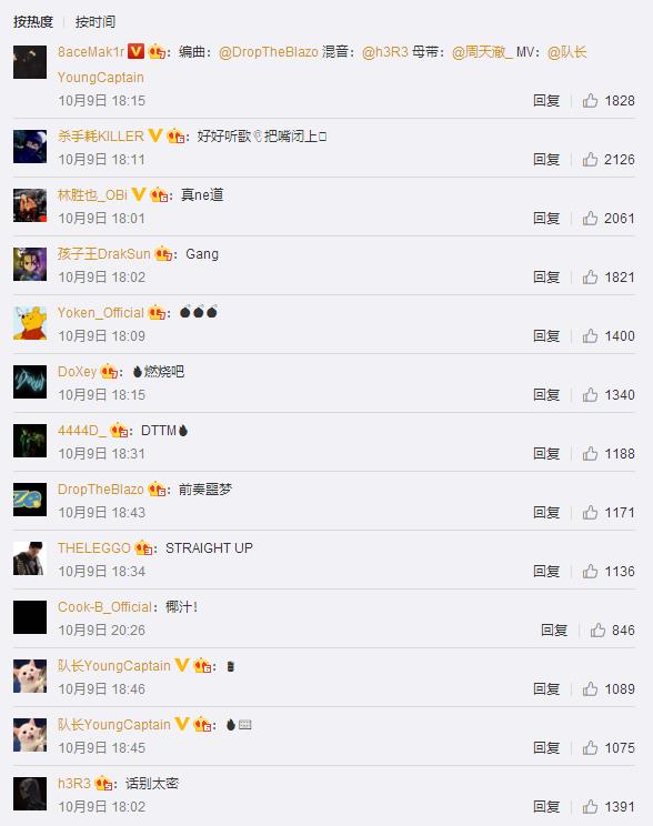 PGONE发布MV的微博评论下,很多熟悉Rapper和制作人纷纷打call支持。
