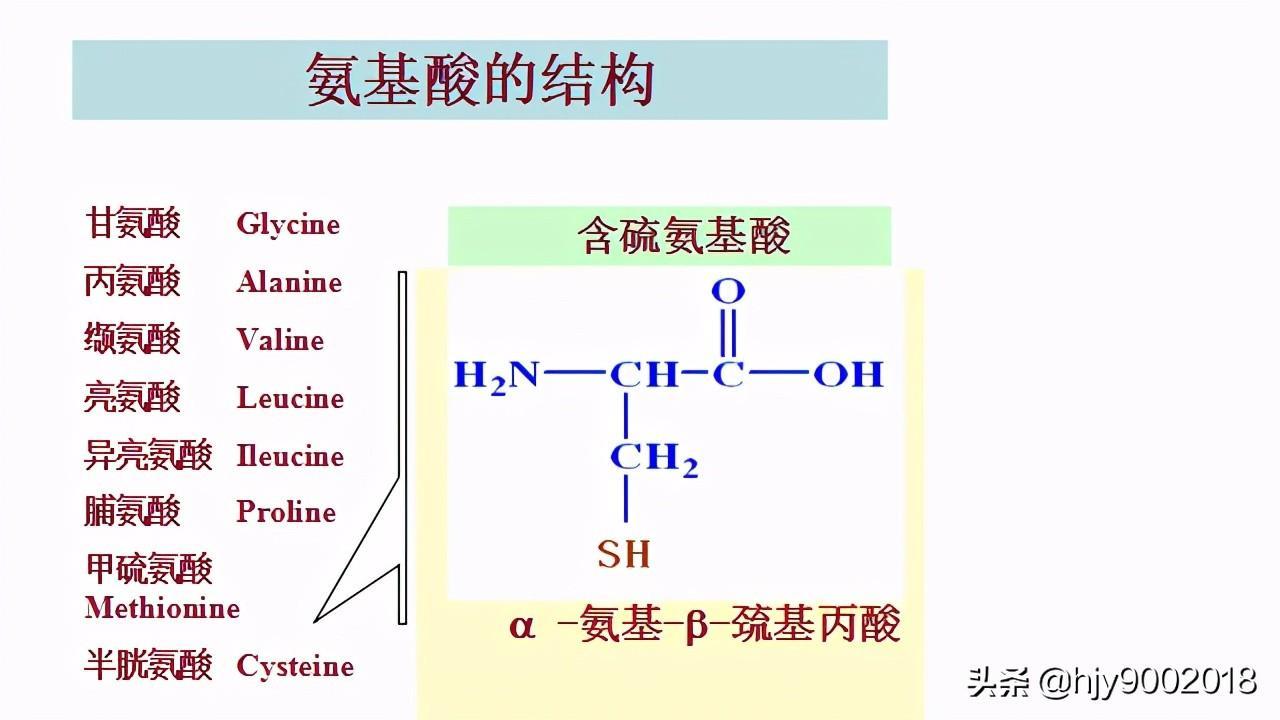 蛋白质的基本结构单位—氨基酸:组成蛋白质的氨基酸有20种。