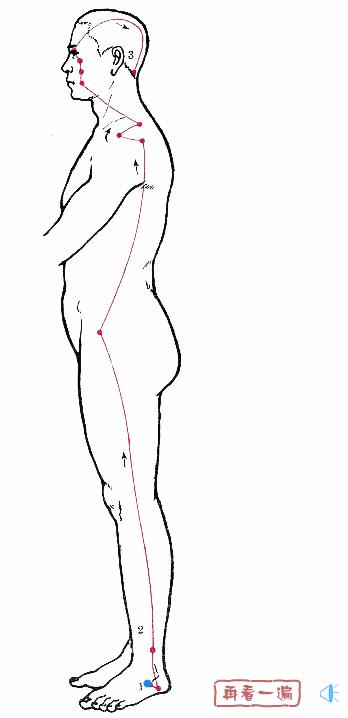 【循行路线】:阳跷脉,起于足外踝下申脉穴,沿着外踝上行,经股外侧分布于胁肋,循行于肩外侧,上达口旁,到达目内眦,与阴跷脉相并上行,到达风池穴,从项后两筋间风府穴入脑。