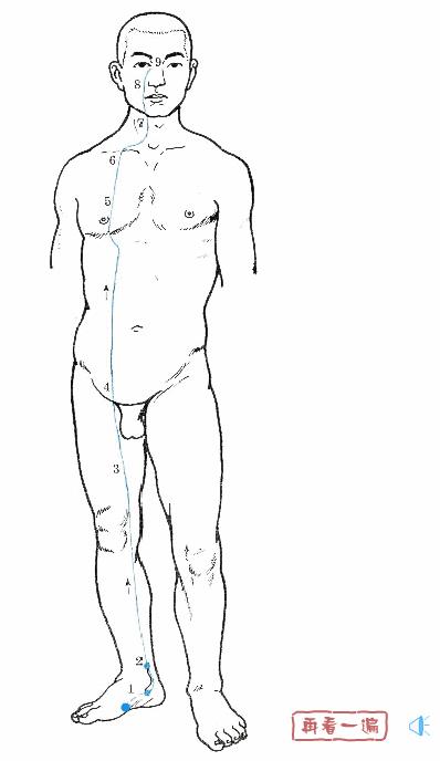 【循行路线】:阴跷脉,起于足跟内侧的照海穴,通过内踝上行,沿着大腿的内侧进去前阴部,沿着躯干腹面上行,至胸部入盆缺,上行于喉结的人迎穴之前,到达鼻尖,连属眼内角,与阳跷脉会和,再相并上行入脑。