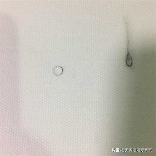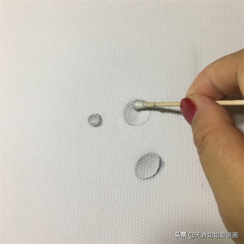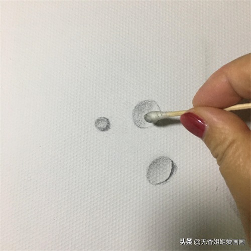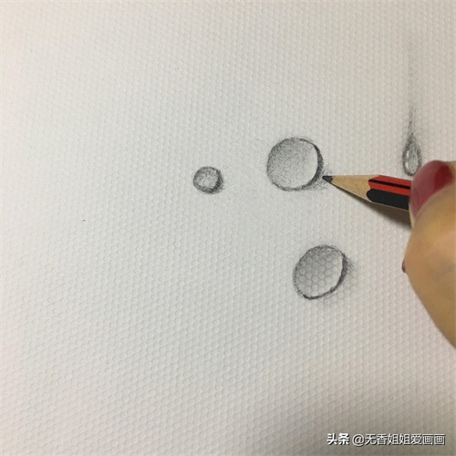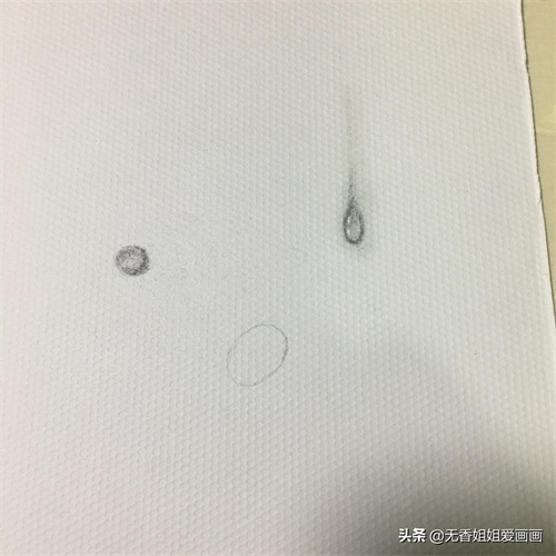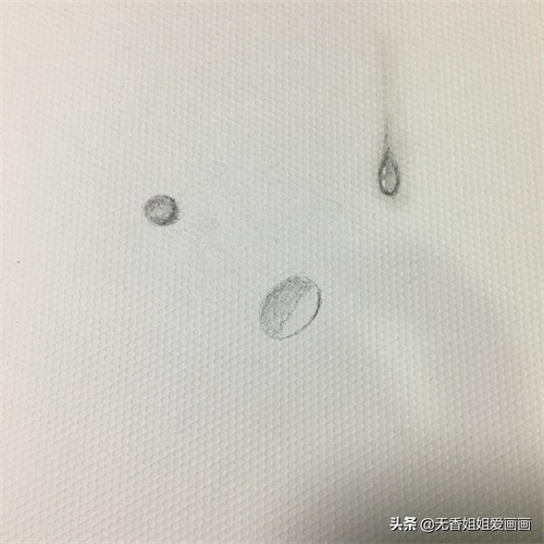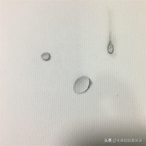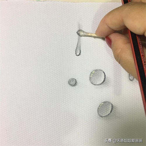 水滴左上方位置用铅笔轻轻的涂抹,然后用棉签揉擦涂抹的地方,靠近右边的位置留白