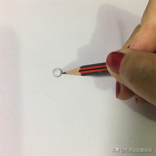 我们可以在画之前就定好光源,比如像这样(我们再来画一个小圆形的),光源在左侧,那么就把右边的边缘线画重一些,左边的边缘线颜色浅一些。