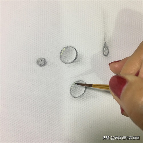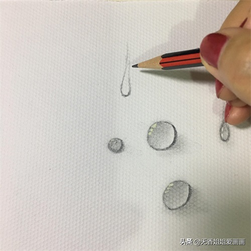 3、给水滴加上高光,再次用铅笔加深边缘线。