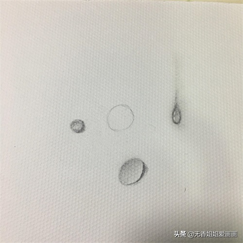 2、用棉签或者餐巾纸揉擦整体,然后用铅笔用力画出水滴下方的边缘线。(光射源在左侧)