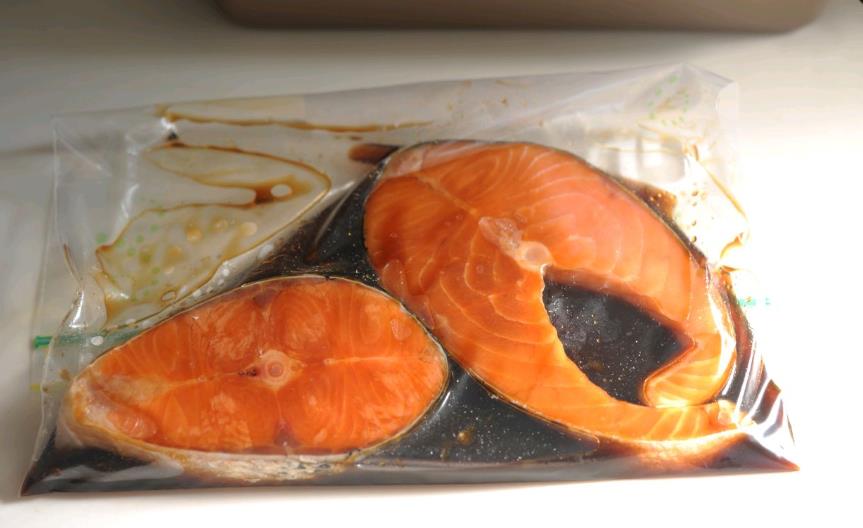 5:放入密封袋中,取1/2杯的照烧汁腌制1小时左右。