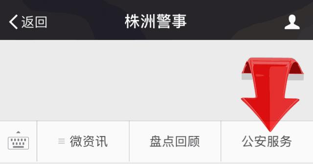进入株洲警事公众号,点击最右边的自定义菜单【公安服务】即可进入!